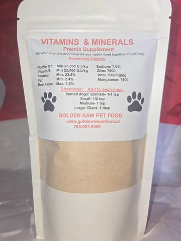 A simple, all-in-one vitamin and mineral supplement designed to support balanced nutrition in raw and home-prepared meals. Made with essential vitamins and minerals to support bone health, immunity, and overall wellbeing. Just sprinkle the recommended amount onto each meal—easy and convenient for dogs of all sizes