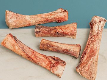 Our beef marrow bones are an excellent source of calcium, phosphorus, and healthy fats. Not only will a meaty marrow bone keep your pup entertained for hours, but it will also clean their teeth naturally as they gnaw away